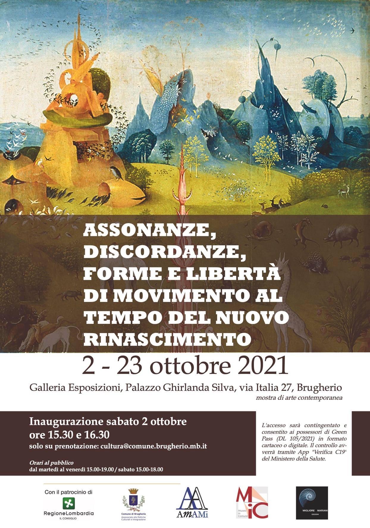 Mosta collettiva "Assonanze, discordanze, forme e libertà di movimento al tempo del Nuovo Rinascimento" dal 2 al 23 ottobre 2021 presso Galleria Esposizioni Palazzo Ghirlanda Silva a Brugherio.
