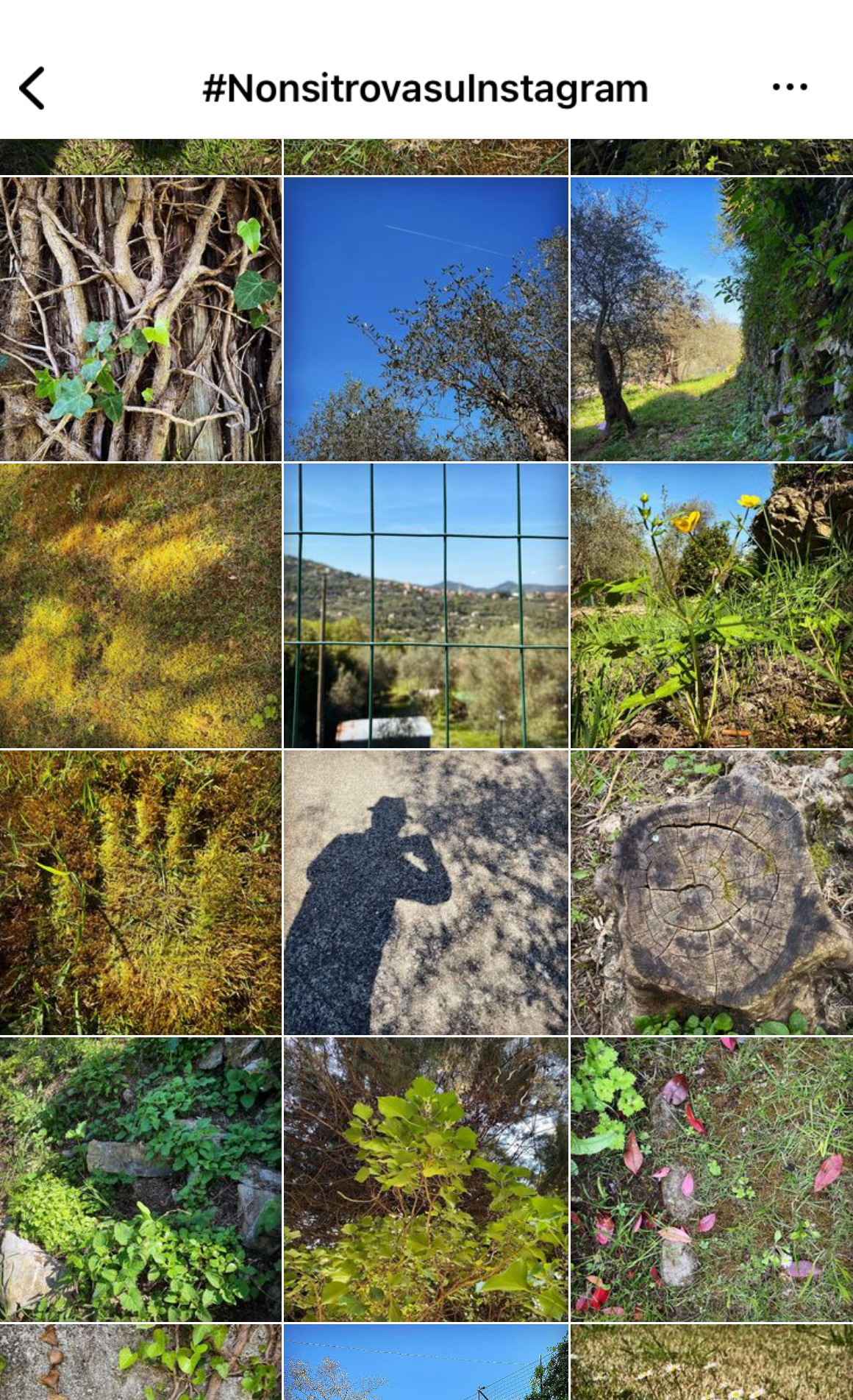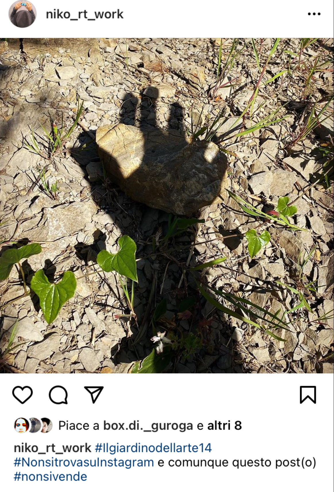 Le immagini e le Stories realizzati con il suo smartphone sono stati pubblicati in tempo reale su Instagram e su Facebook usando gli hashtag: #ilgiardinodellarte14 e #nonsitrovasuInstagram e aggiungendo nella didascalie altri del tipo: #nonsivende #nonsiconsuma #restaqui e simili.