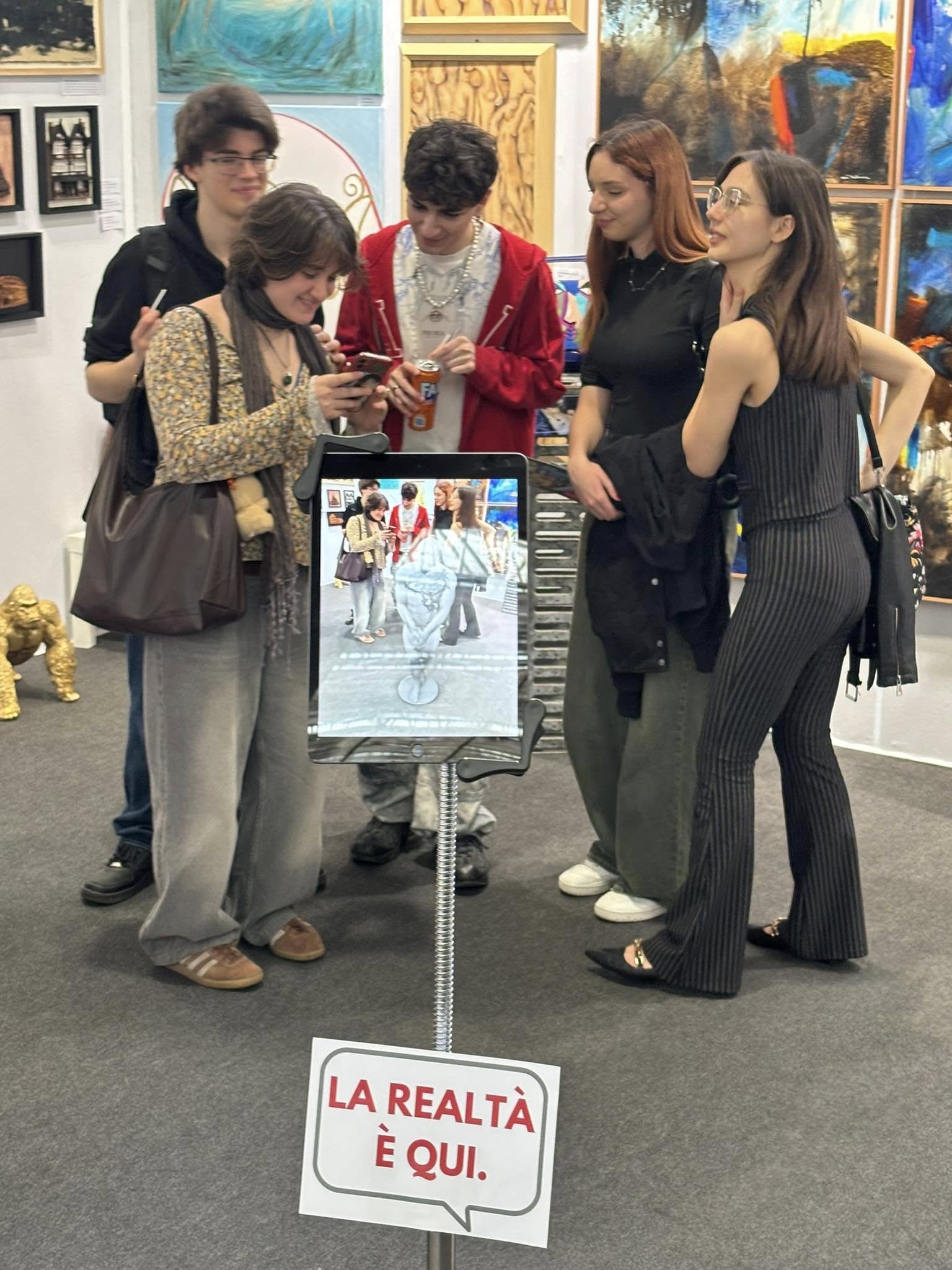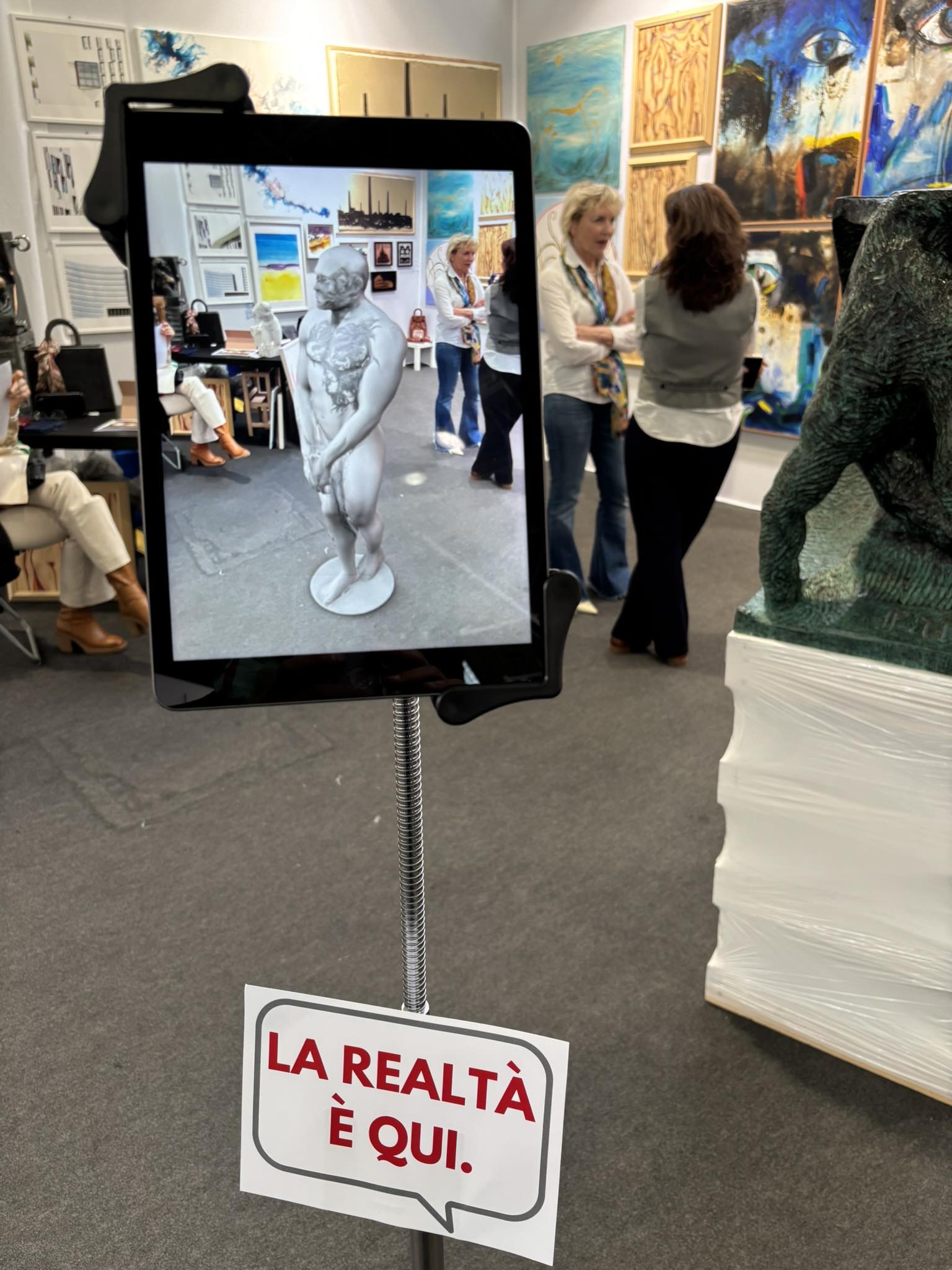 Performance "La Realtà è Qui" durante la fiera ART3F a Palazzo Esposizioni di Novegro il 5 aprile 2025