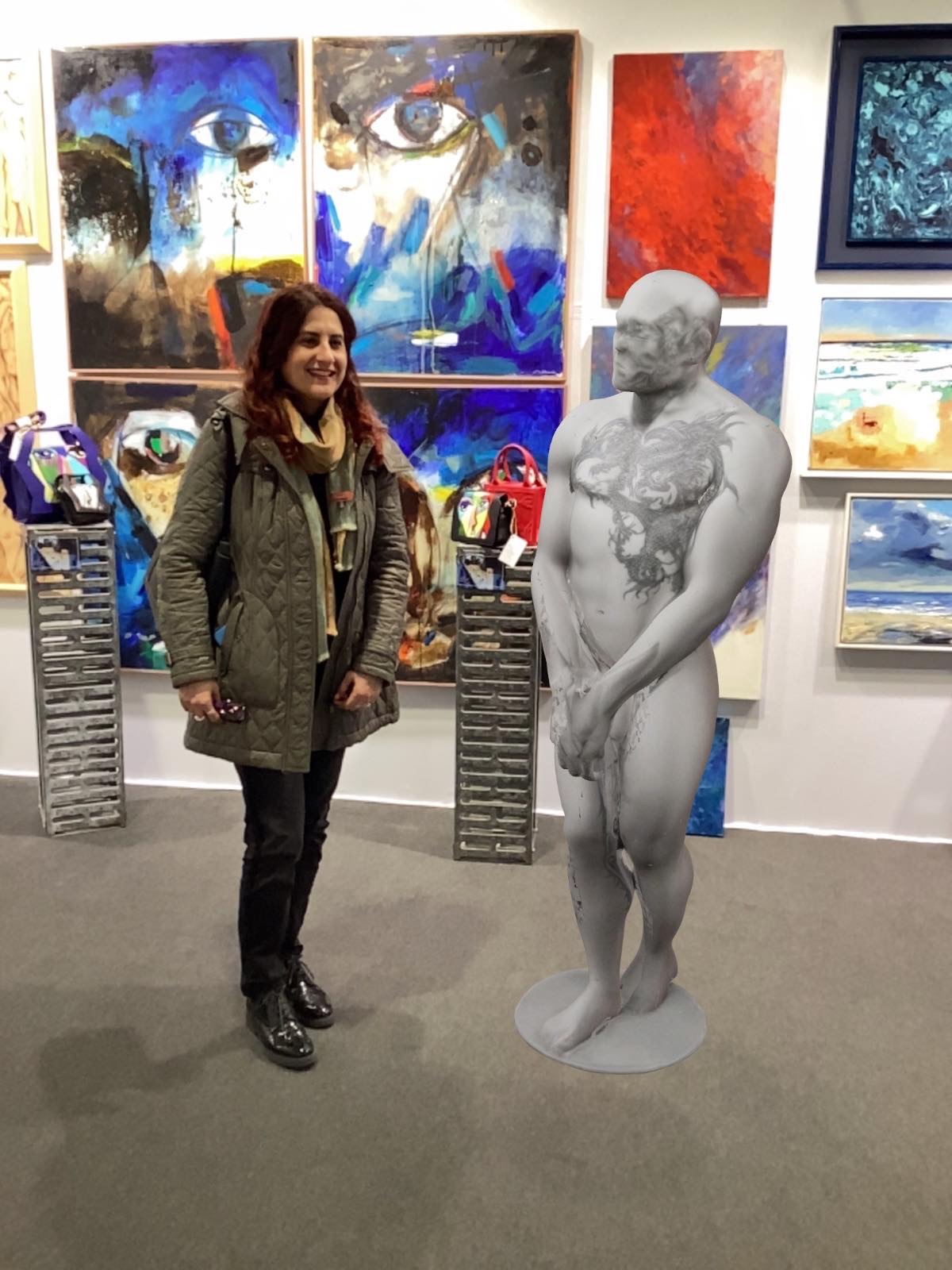 Di seguito le foto della performance e del pubblico (compresi alcuni artisti) che ha interagito con l'installazione e con la scultura digitale creata da una IA partendo da una immagine scattata da Bertoglio.