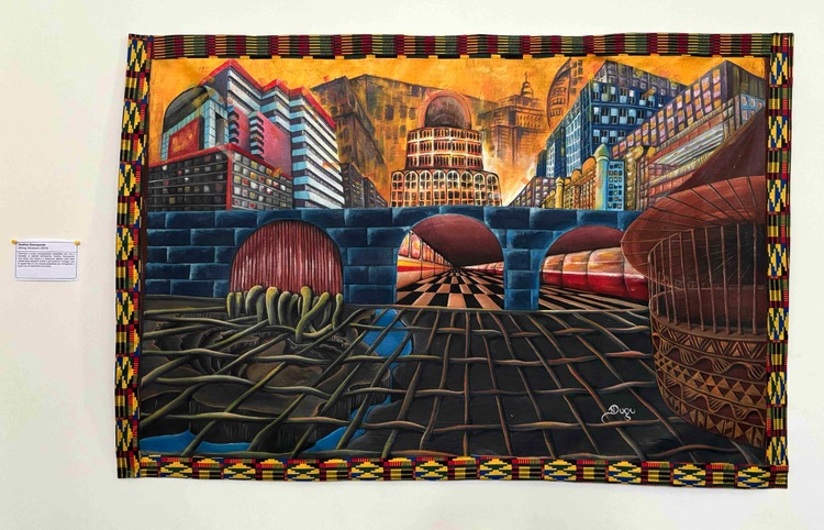 Filantropo e artista visuale/astratto autodidatta che vive a Kampala, la capitale dell’Uganda, Godfrey Sserugunda crea dipinti che incitano e scatenano dibattiti sullo stato attuale delle situazioni sociali e geo-politiche. Impiega l’uso di oggetti fittizi in una visuale prospettica per immaginare il futuro con un riferimento al passato.