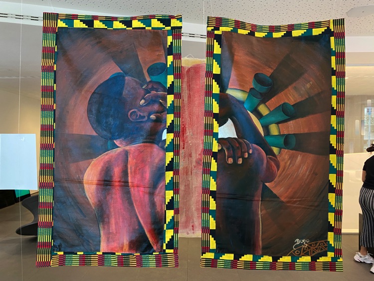 Filantropo e artista visuale/astratto autodidatta che vive a Kampala, la capitale dell’Uganda, Godfrey Sserugunda crea dipinti che incitano e scatenano dibattiti sullo stato attuale delle situazioni sociali e geo-politiche. Impiega l’uso di oggetti fittizi in una visuale prospettica per immaginare il futuro con un riferimento al passato.