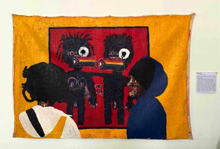 His works reflect his internal struggles, born from depression and frustration, and serve as a therapeutic outlet. Through his art, addresses themes of identity, corruption, life, and death, challenging pervasive stereotypes and giving voice to the marginalized. His unique technique combines painting and writing, creating a visual and literary narrative that explores profound existential questions.
