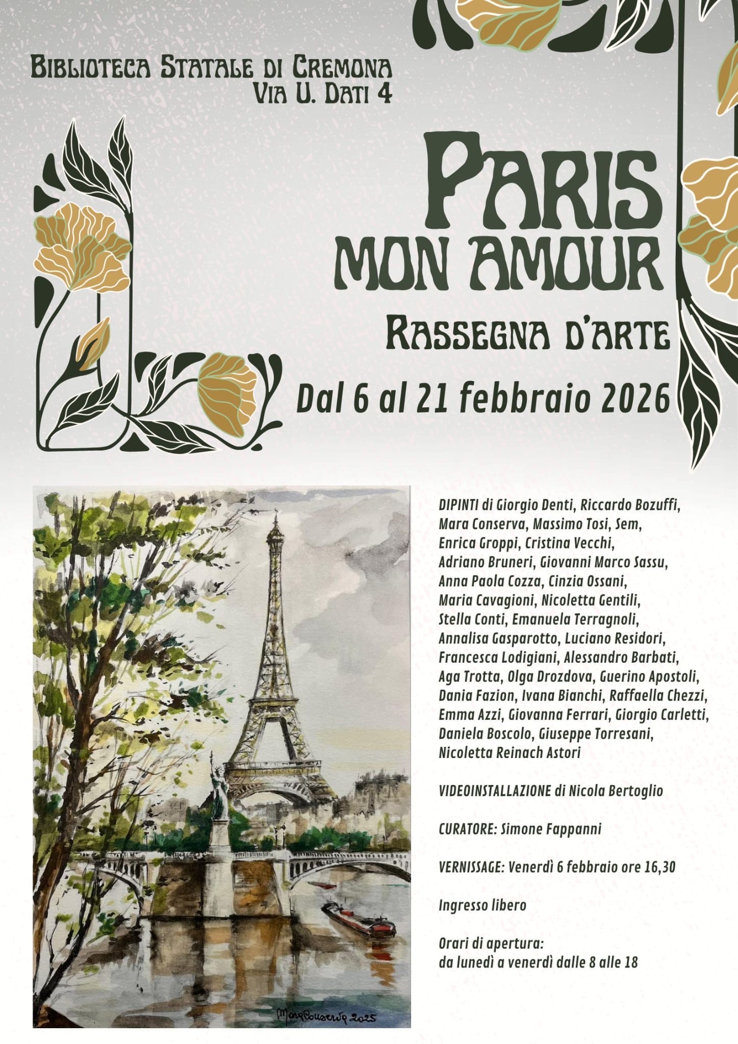 Collettiva "Paris Mon Amour" presso la Bibblioteca Statale di Cremona dal 6 al 21 febbraio 2026