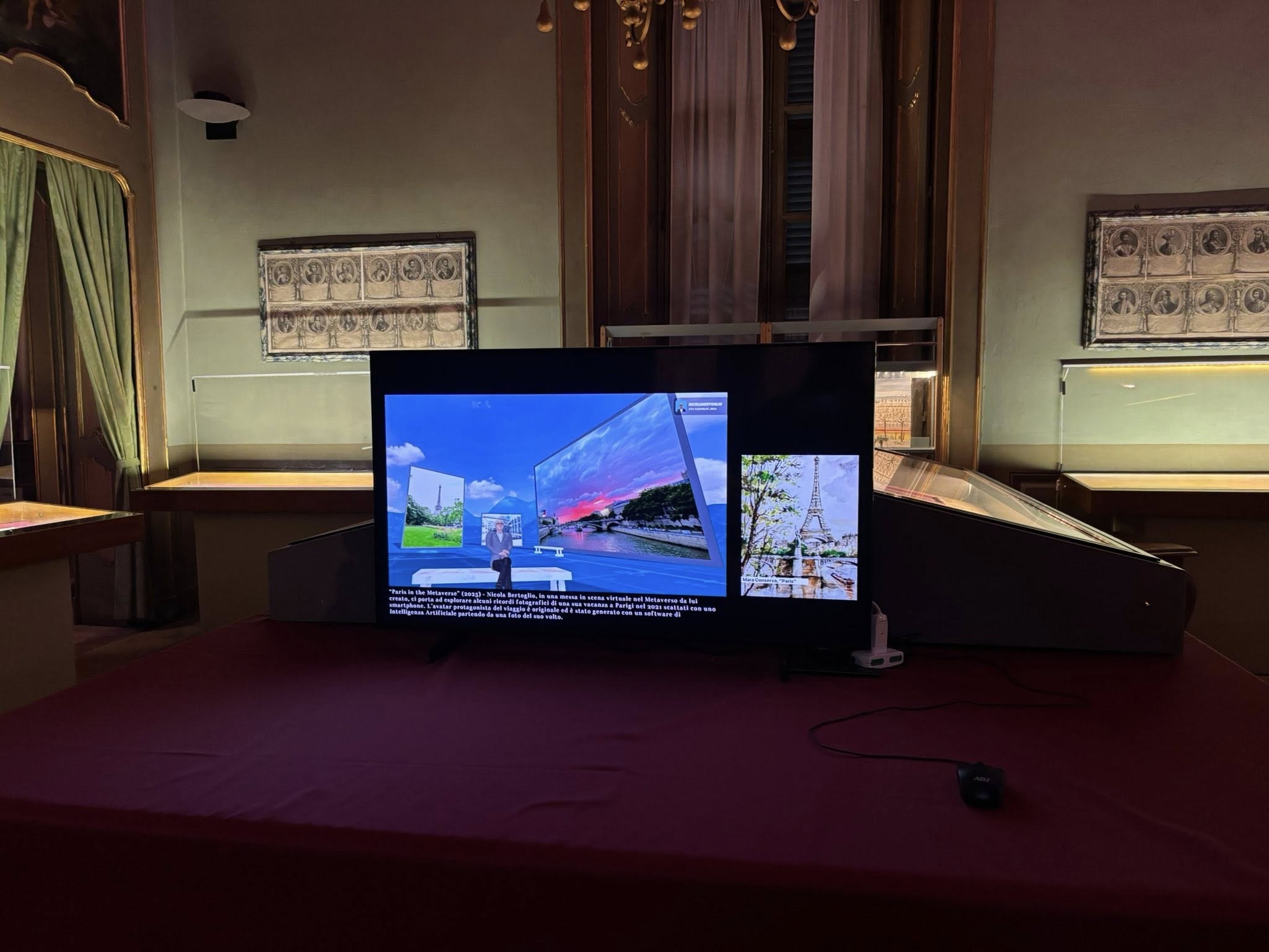 Di seguito le immagini della installazione di Nicola Bertoglio comprendente l’opera “Paris in the Metaverse”.