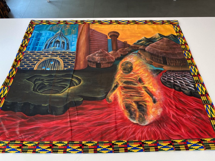Filantropo e artista visuale/astratto autodidatta che vive a Kampala, la capitale dell’Uganda, Godfrey Sserugunda crea dipinti che incitano e scatenano dibattiti sullo stato attuale delle situazioni sociali e geo-politiche. Impiega l’uso di oggetti fittizi in una visuale prospettica per immaginare il futuro con un riferimento al passato.