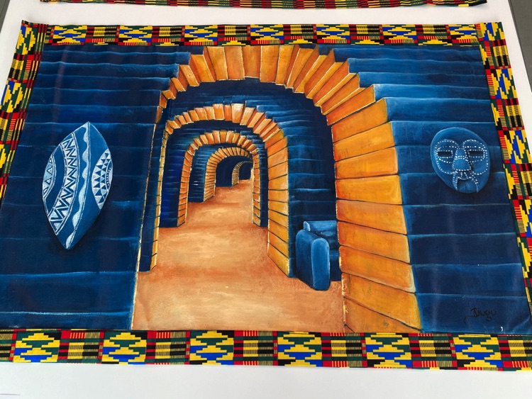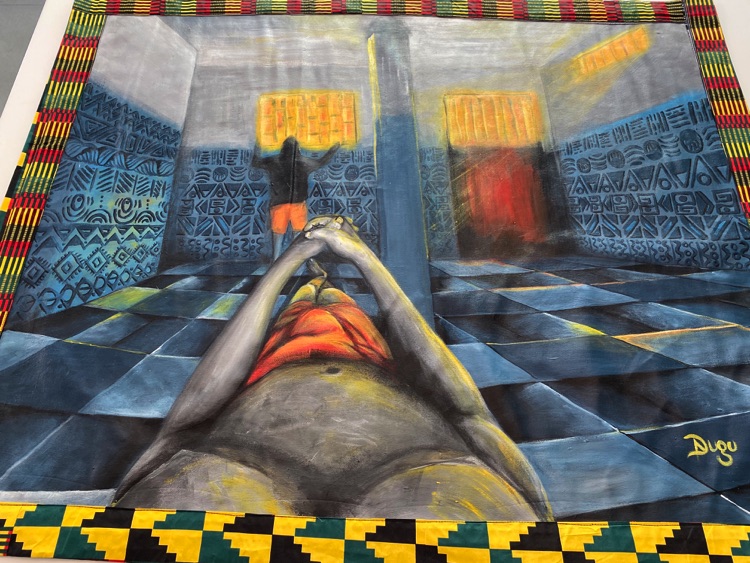 A philanthropist and v’abstract self-taught artist living in Kampala the capital of Uganda Godfrey Sserugunda creates paintings that excite and spark conversions about current state of social and Geo-political situations. He employs use of artificial objects in perspective view to envision the future with reference to the past.