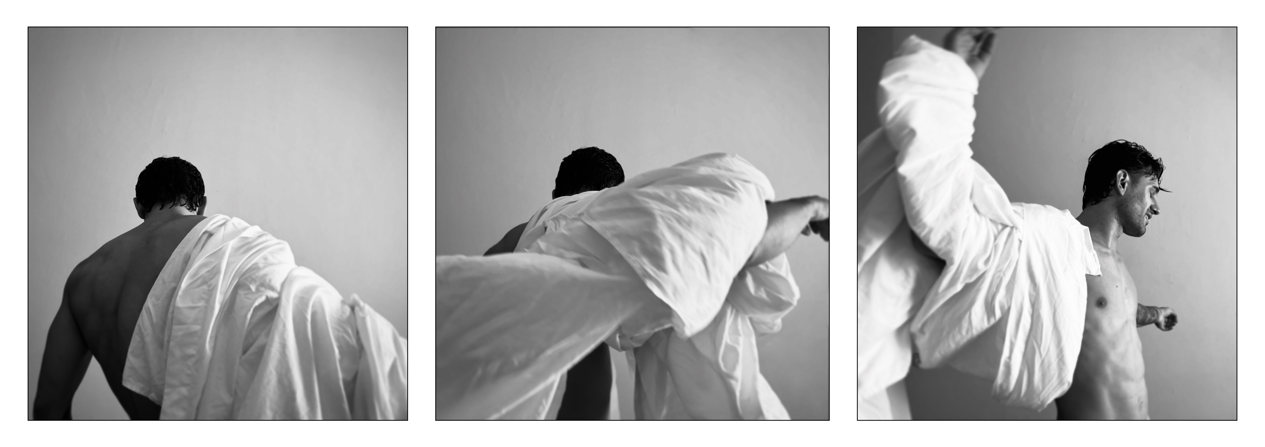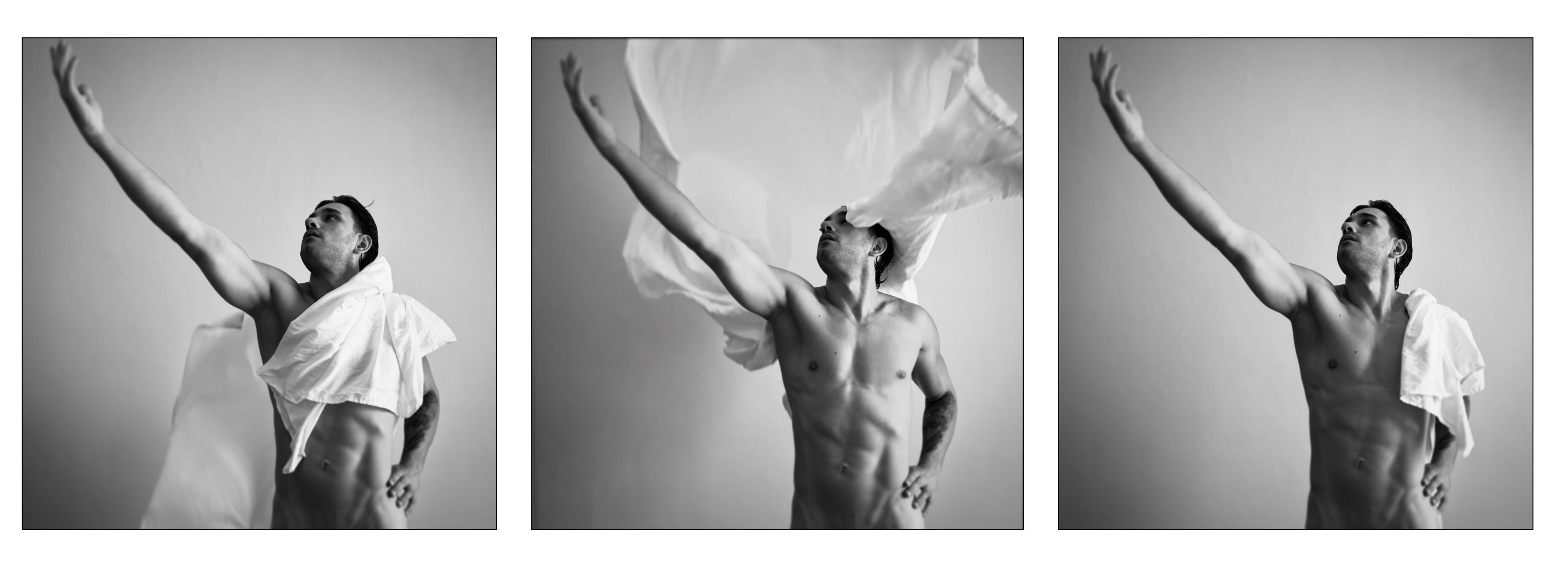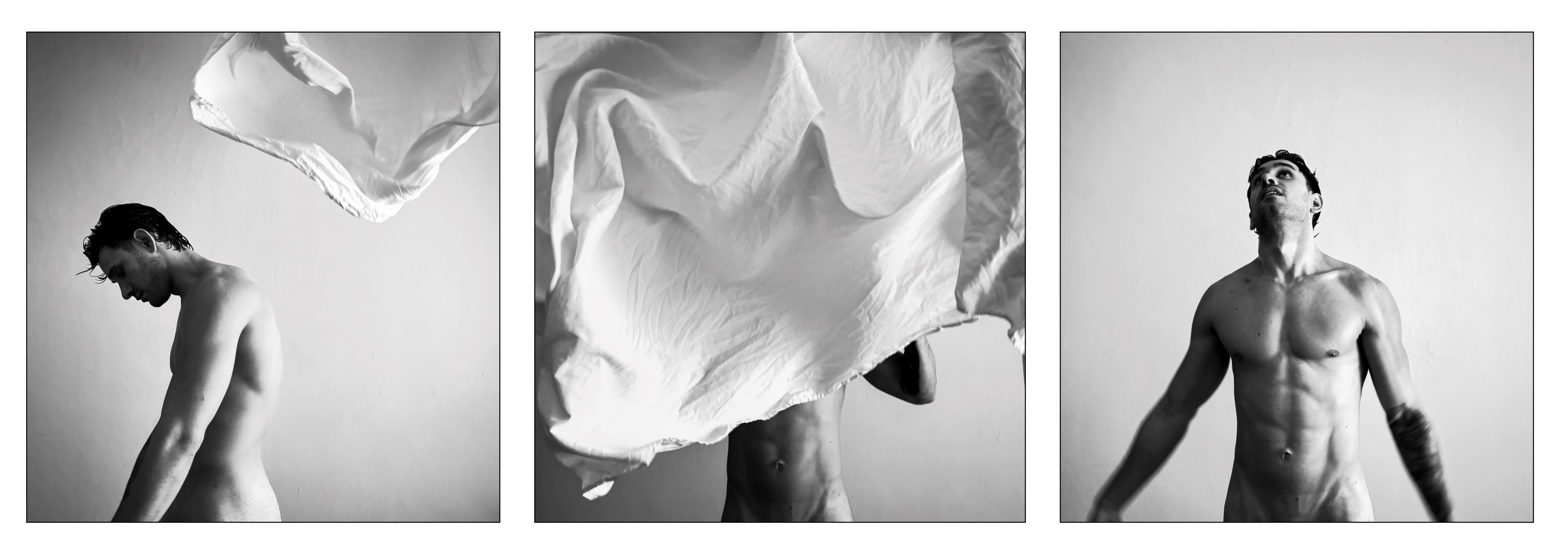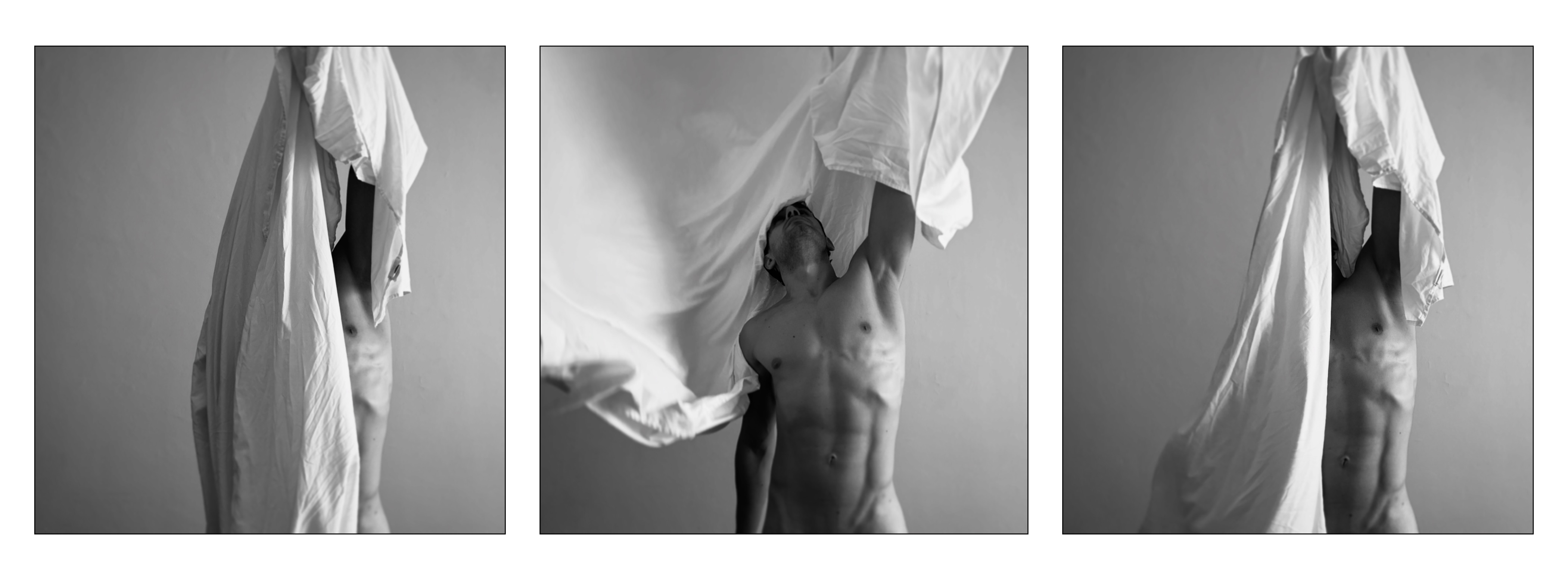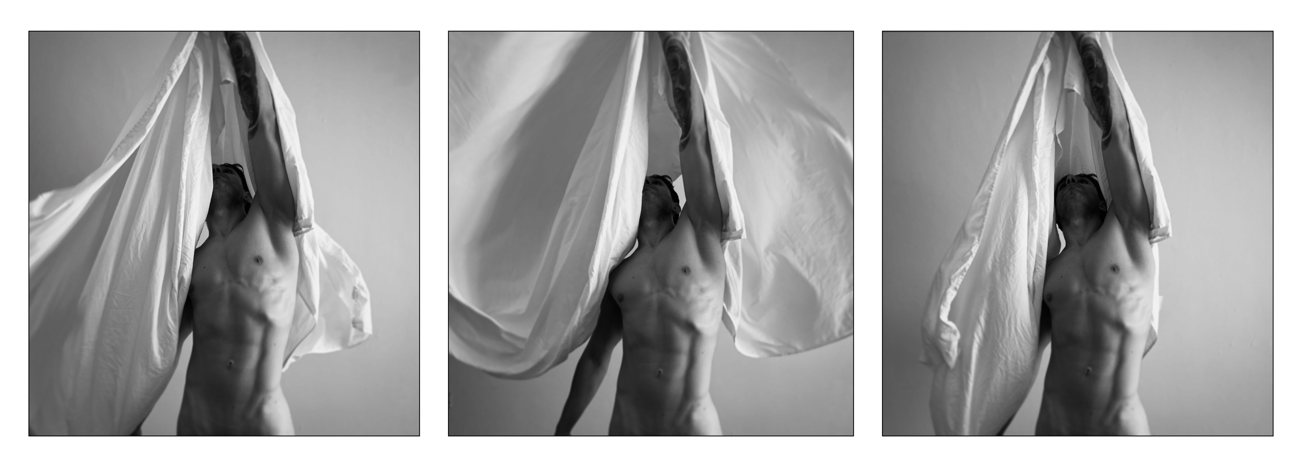 Treccani under the heading Panneggio gives the following definition: "the way of arranging the masses and folds of the garments in works of figurative art and especially in sculpture, has always had a notable importance in artistic production, and above all in the classical one, in which it first assumed the aspect of a system". In this project I pay homage to this practice using photography and the casualness with which a cloth falls on a naked body creating folds and shapes around it.