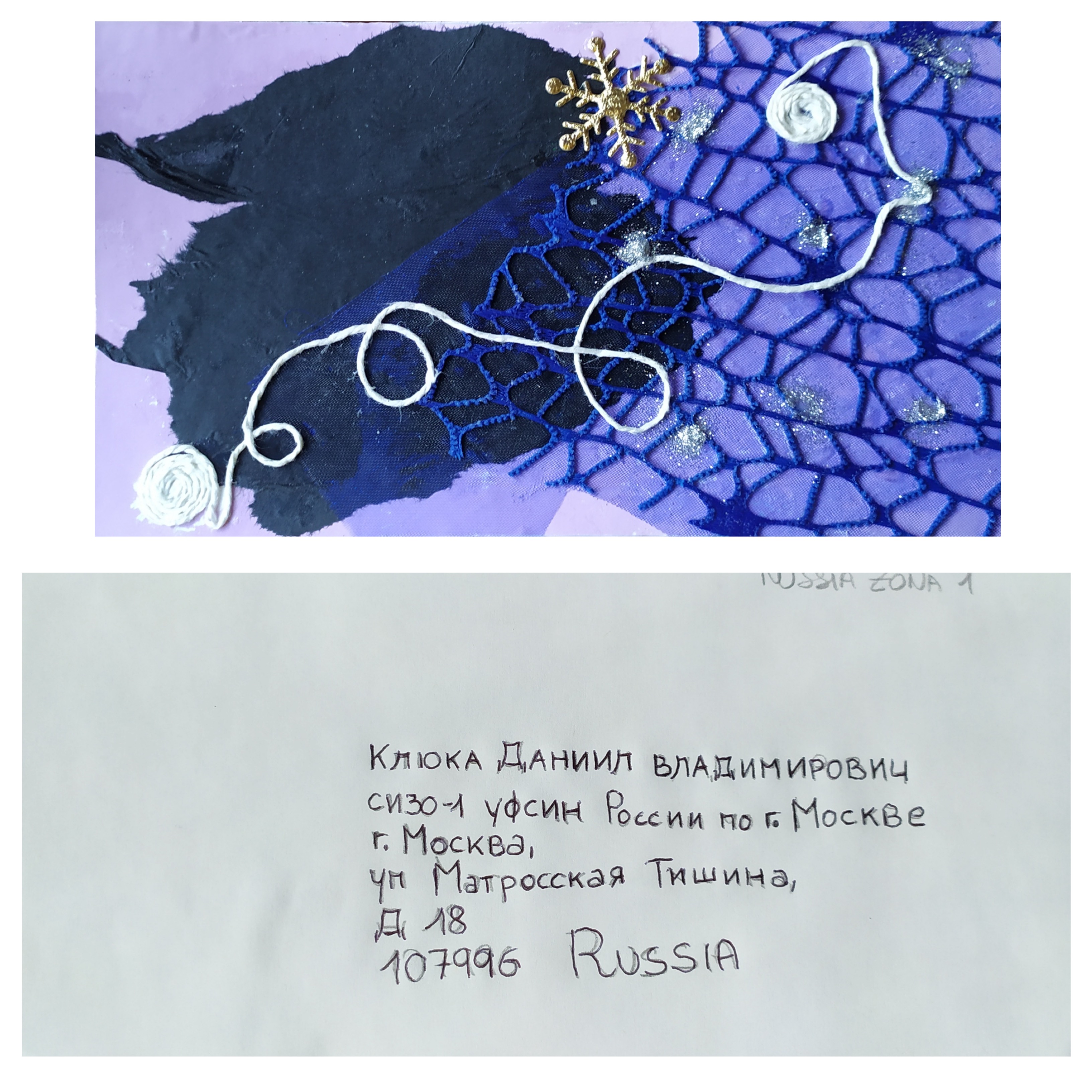 The stamp to be used must be the one specific to Russia (Zone 1) and as simple as possible as well as the envelopes because the guards could keep them. For this initiative there is no deadline other than the end of Daniil's imprisonment. Let him feel that we artists from all over the world are close to him and think of him.